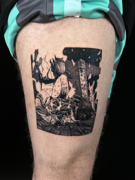 I already have several tattoos inked this way in my portfolio and I am very happy about the result, and it would be different without the use of hand-poked tattoo techniques. Pokemon is a theme I love to play with but I had requests for One Piece, Cowboy Bebop or more ornamental tattoos. In the future, I want to put more of my time and energy into this style because it sums up a lot of things important for me in the tattoo. Japanese pop culture is always present, I bring some of my personal touch with the use of patterns, and I can ink colors I know will take the place they’re supposed to.