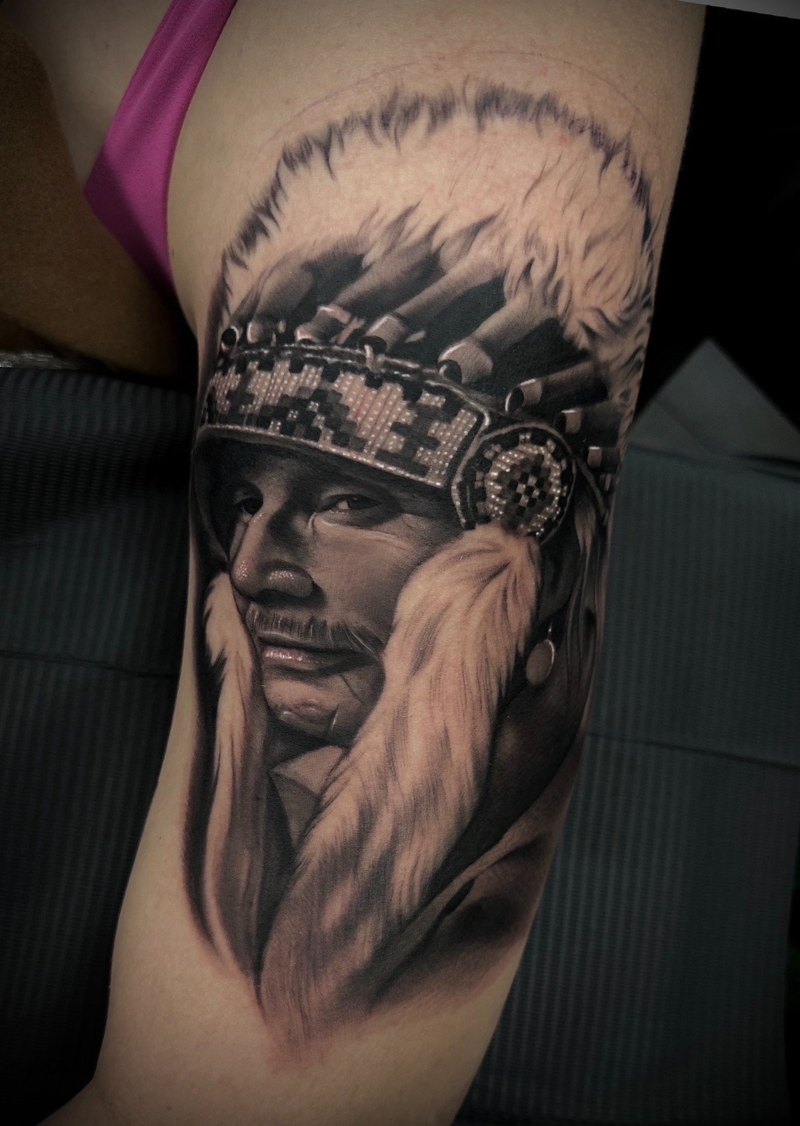 Wiggy: My name is Wiggy and I’ve been tattooing for 20+ years. I’m an Indigenous tattoo artist from Beardy’s, Saskatchewan.