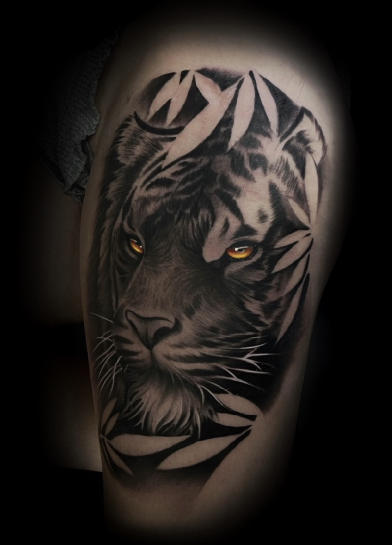 Russell: I have been an artist almost all my life. It started with drawing and eventually my brother introduced me to tattooing. What drew me to tattooing is the ability to showcase one’s freedom of expression through the use of tattoo art.