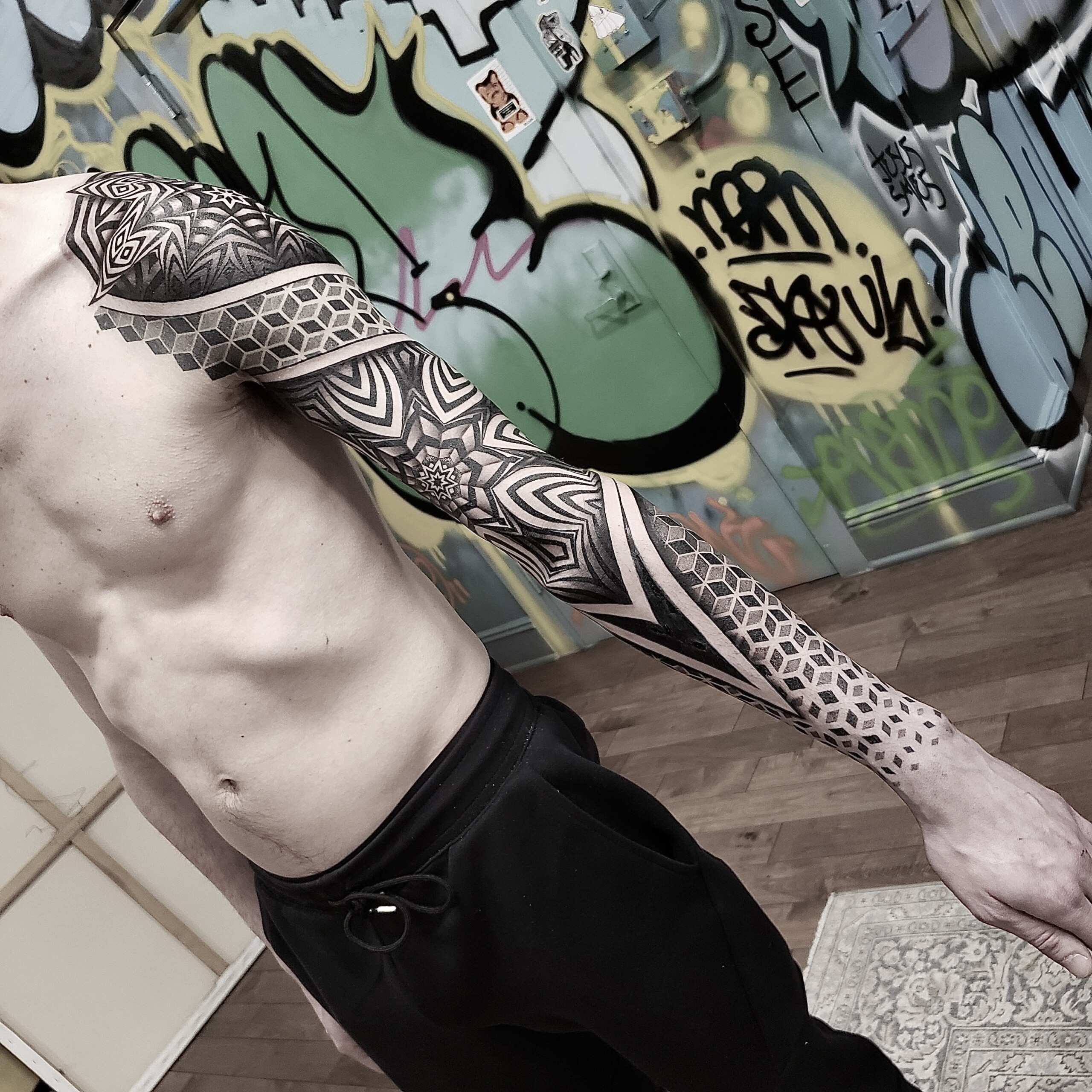 With a blend of artistic finesse and deep respect for the ornamental style’s history and potential. Every artist at the studio brings their unique interpretation to the table, from MaximXIII’s bold contours and ornamental animal works to back to Cascad’s mesmerizing dotwork and geometry.