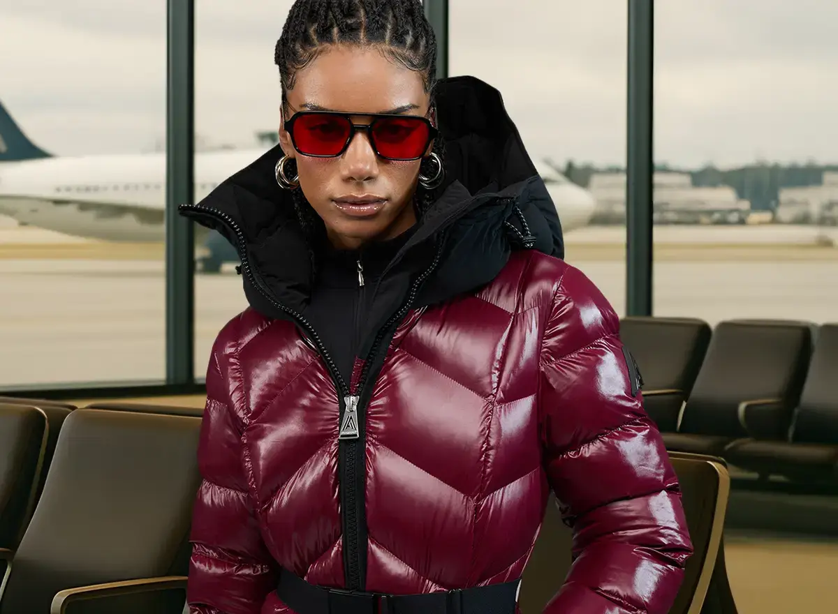 Some of the brand’s best include the Rousset puffer, accentuated with a stripe and slim silhouette, and the Malet parka, made for more intense winter stays, and fitted with vegan sherpa trim. The men’s Chambery puffer has a built-in ski guard and a coated metallic sheen for a streetwear edge. Loriant, the unisex aviator offered in warm chocolate brown and Brière in soft camel with a mix of matte and gloss, are both head-turners on the slopes or the streets.