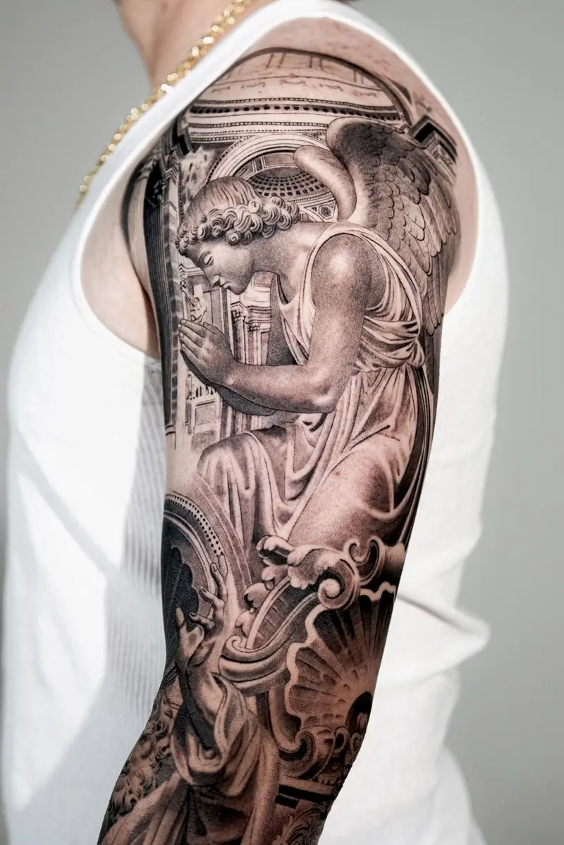Carlos Macedo is a Mexican-American tattoo artist with 19 years of experience, known for creating large-scale masterpieces that blend classical artistry with modern storytelling. His client list includes celebrities and public figures who seek him out for his unique vision and precision. Traveling the world to share his craft, Carlos has brought his work to international stages, including tattooing at Baja Beach Fest, the largest Latin music festival in Mexico. Each piece he creates is more than ink. It’s a celebration of heritage, culture, and identity, honoring tradition while inspiring the next generation through timeless art.