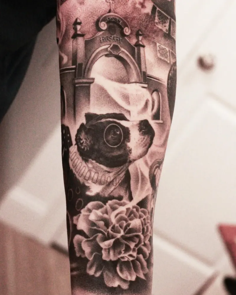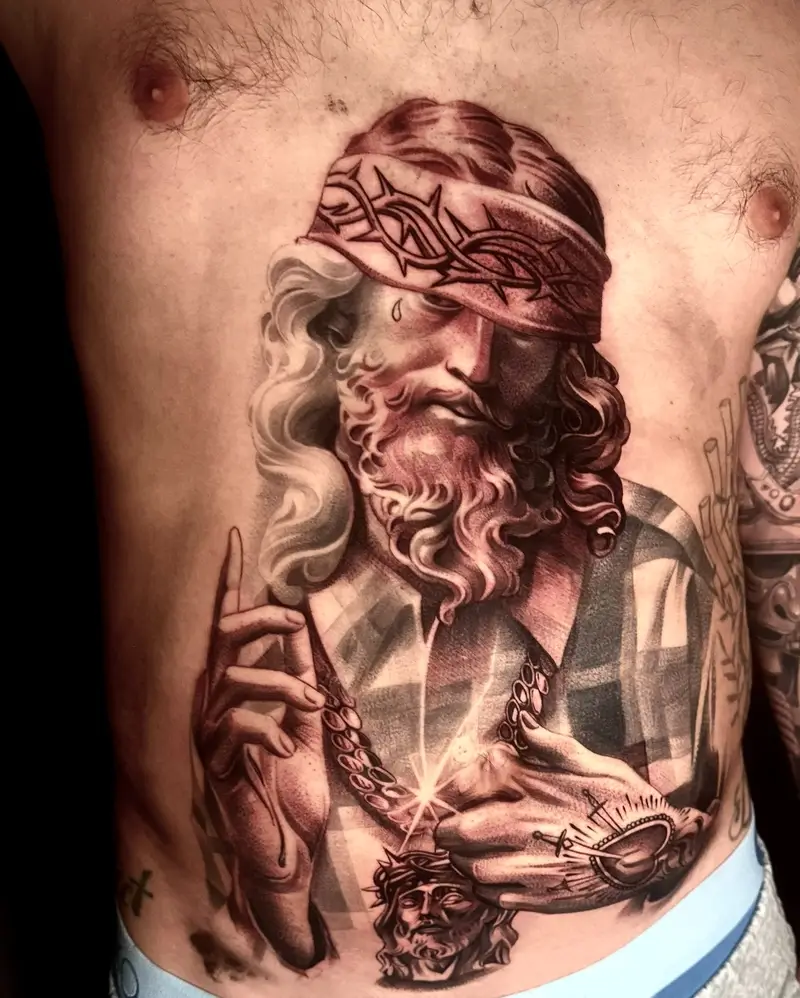Inside Artillery Tattoo, every wall and design radiates creativity, from graffiti murals to intricate flash sheets. The studio’s team of skilled artists share Kendoo’s passion for authenticity, specializing in black-and-grey realism. The vibe is raw yet welcoming, blending hip-hop energy with Latin soul. Beyond tattooing, Kendoo is the founder of Concrete Jungle, a multi-floor cultural event merging tattooing, streetwear, art, and community, uniting artists from both coasts under one roof. His precision and storytelling have attracted icons such as Chris Brown, Playboi Carti, A$AP Bari, and world champion Jermell Charlo, along with experience designing merch for Rolling Loud and French Montana.