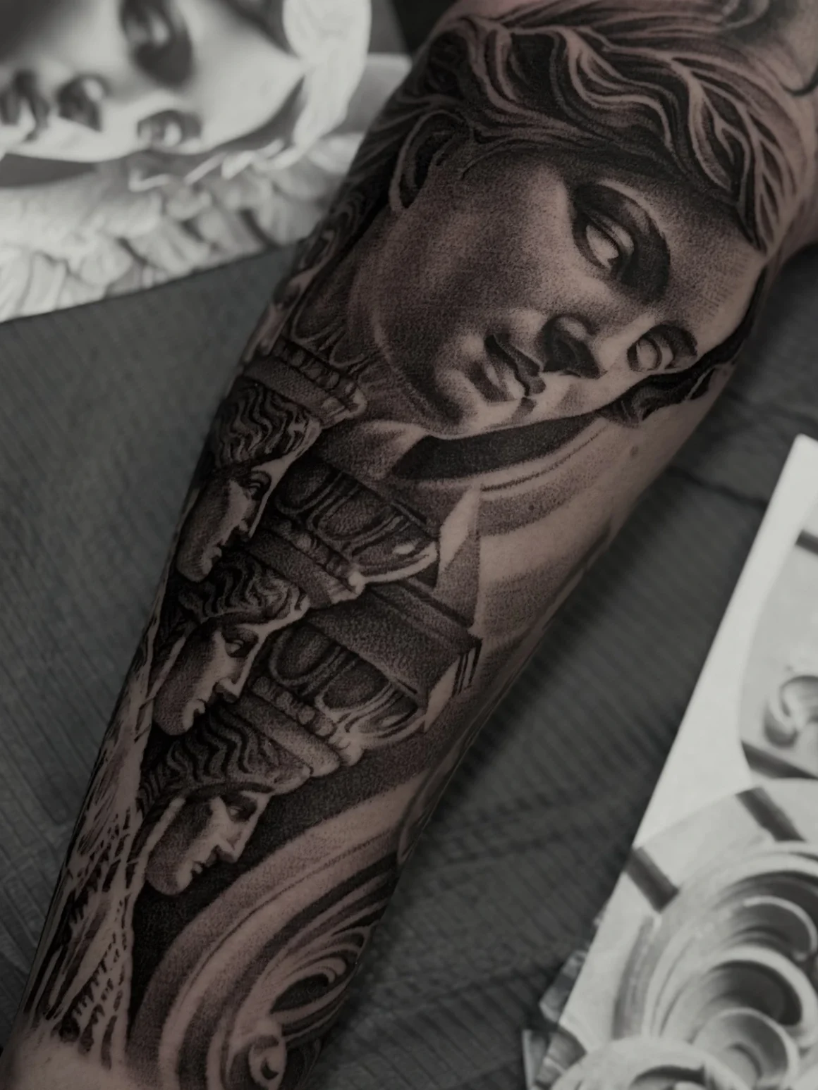 There’s a difference between referencing classical art and being held to its standards. Nazarii Kuryliak’s work sits in that gap, where black and grey realism isn’t just about likeness, it’s about whether tattooing can carry the same weight as sculpture.