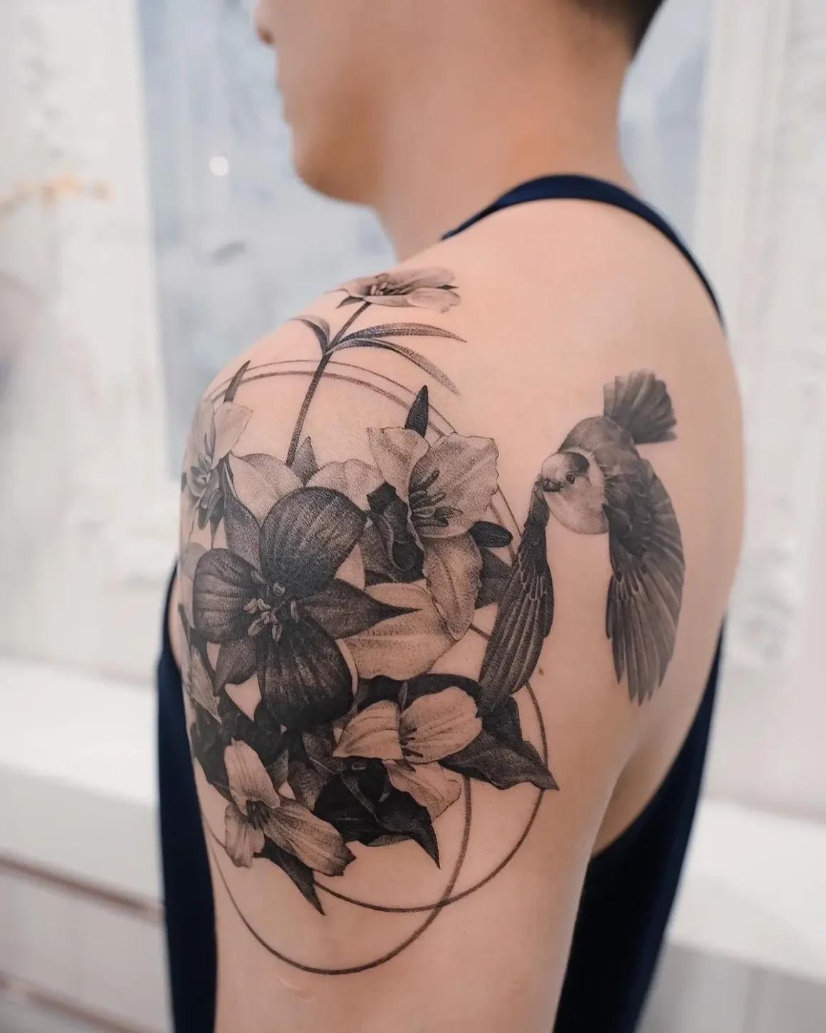 That restraint is deeply influenced by Korean aesthetic philosophy, which values balance, natural flow, and imperfection over rigid symmetry or artificial perfection. In traditional Korean art, mastery is often concealed rather than displayed. Technique exists beneath the surface so feeling can emerge naturally. Kim applies this same principle to tattooing.
