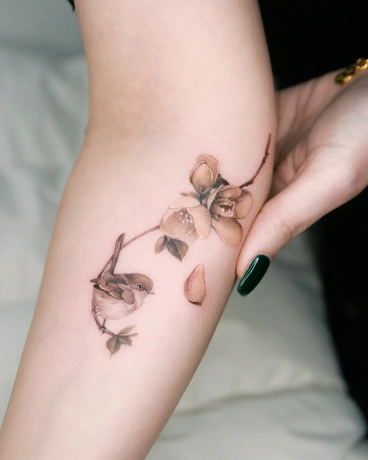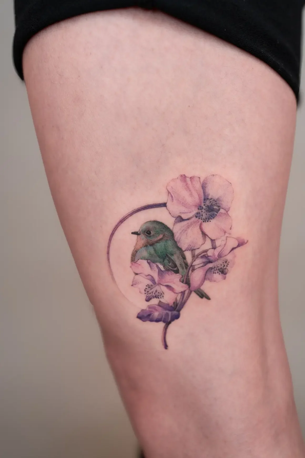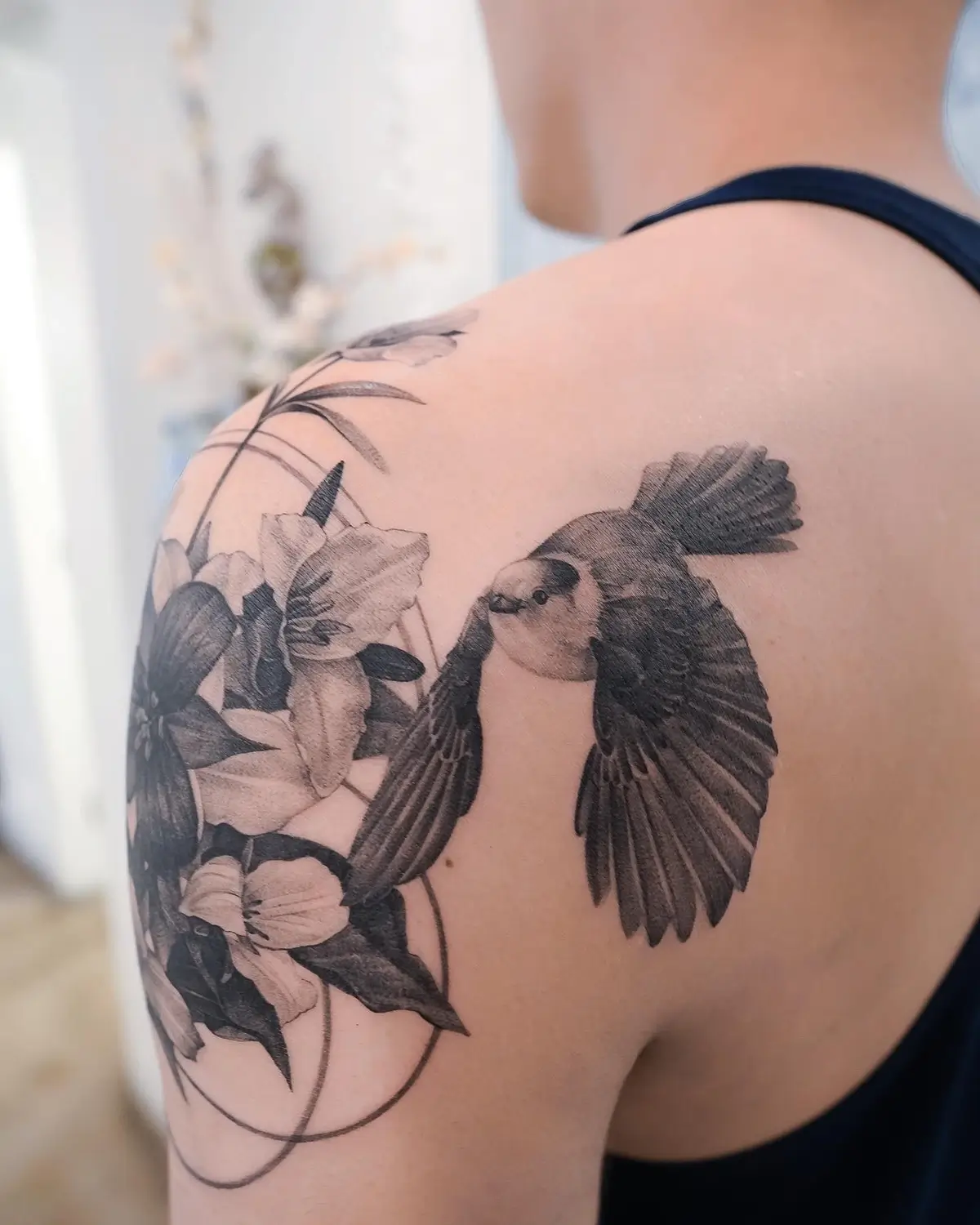 Nature frequently provides the visual language. Birds, animals, and flowers appear not as decoration, but as reflections of impermanence, resilience, and renewal. These forms carry warmth and emotional stability, qualities Kim believes are essential in a medium that remains on the body for a lifetime. The space surrounding them becomes part of the narrative itself.