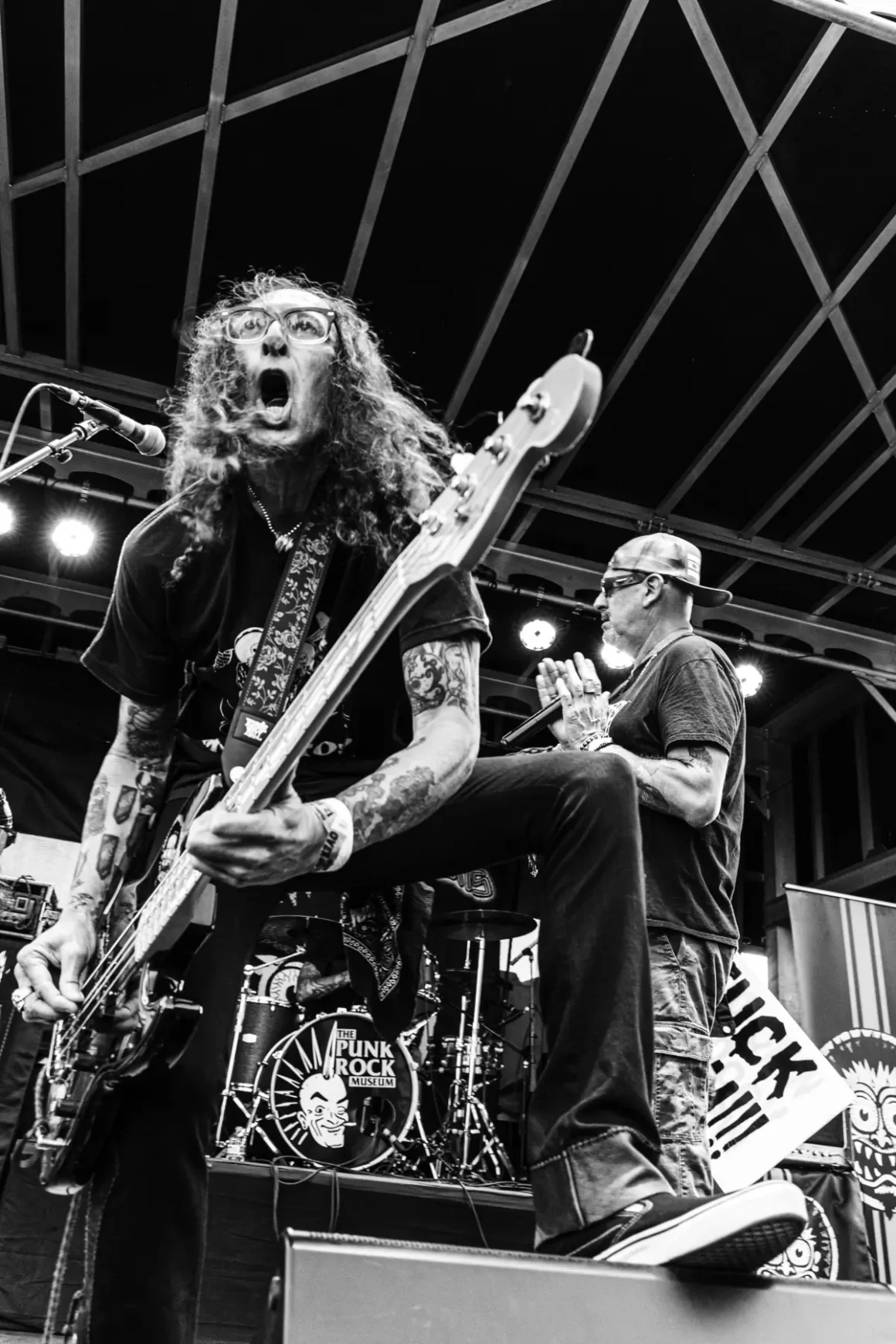 Ska/punk legends Voodoo Glow Skulls emerged on stage, its full-throttle trombone and sax intermingling flawlessly with frontman Frank Casillas’ raw, relentless vocals, amplifying the crowd’s energy. As the sun dipped in the background, T.S.O.L. headlined the event with penetrating instrumentals and Grisham on the mic delivering defiant lyrics.