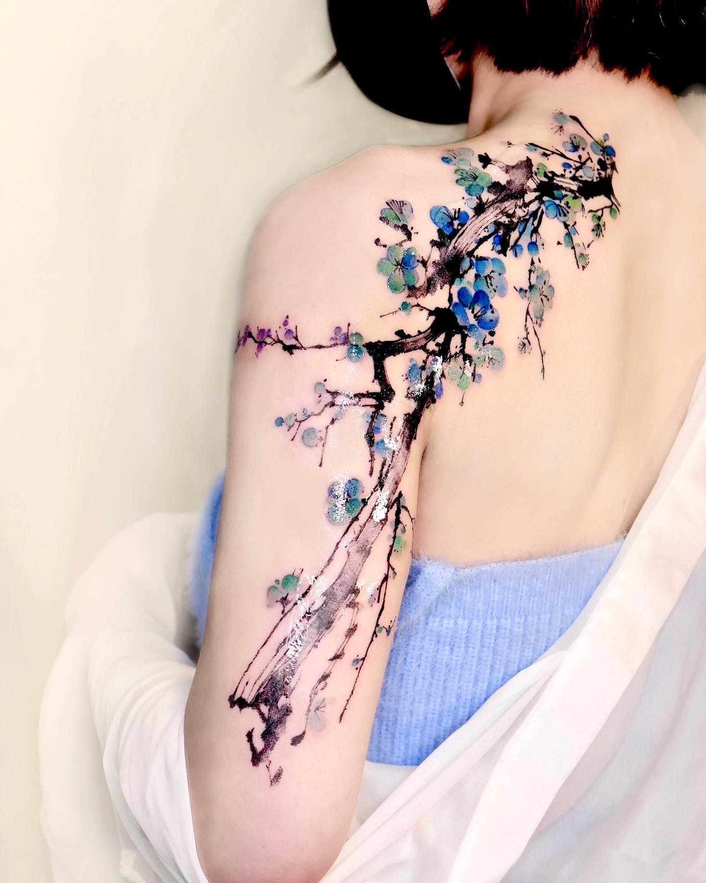 The second part of Hongdam Studio’s expansion story features Seolhee, a talented tattoo artist who has been a key part of the studio’s success in Seoul. Known for her beautiful blend of traditional Oriental motifs with a modern twist, Seolhee’s work has gained international acclaim, particularly her plum blossom designs, which symbolize resilience and beauty in the face of adversity.