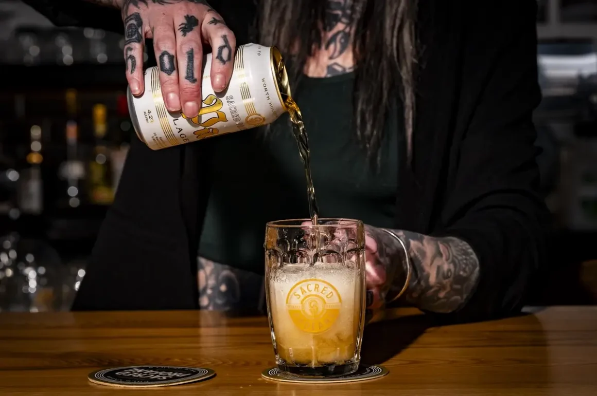 Sacred Profane is a focused brewery and tankpub in Biddeford, Maine, dedicated to lager brewing with a balance of tradition and modern precision. Keeping things intentionally simple, the brewery offers just two beers, a Pale Lager and a Dark Lager, each crafted using techniques like open fermentation, triple decoction mashing, and conditioning in horizontal tanks. Poured directly from copper tanks above the bar, the beer is served at peak freshness. In a crowded craft space, Sacred Profane stands out by doing less, better, delivering clean, expressive lagers that speak for themselves.