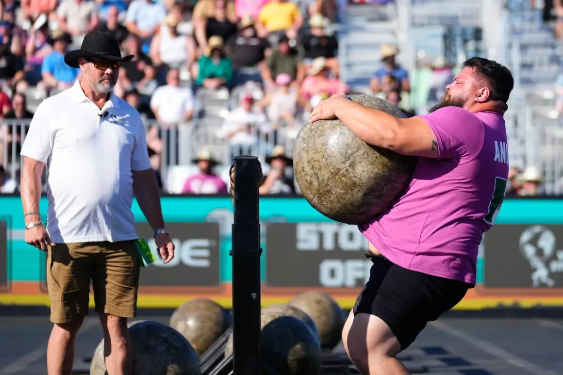 “The only place I won’t get tattooed is on my forearms, because doing the Atlas Stones will ruin your skin,” says two-time World’s Strongest Man competitor and Texan Austin Andrade, explaining, “(The move) requires rolling the stones on your forearm using a sticky goo on your skin to grip them.”