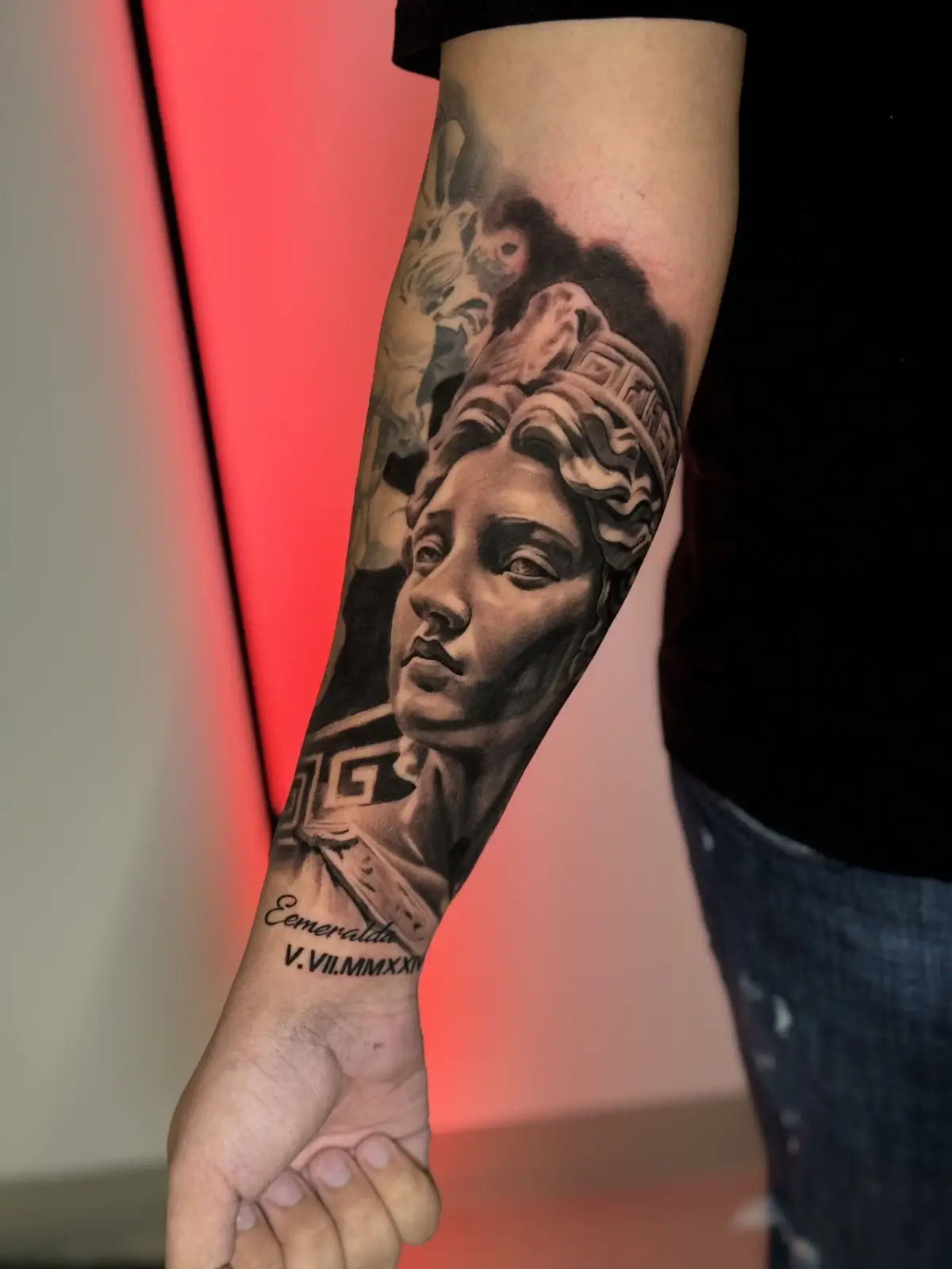 Every tattoo starts with conversation. Rudenko wants to understand the idea and the emotion behind it before he builds the composition. From there, he thinks in terms of light source, negative space, and flow on the body. Portraits are his preferred challenge because there is no room to hide. Subtle mistakes show immediately, and restraint matters more than overworking.