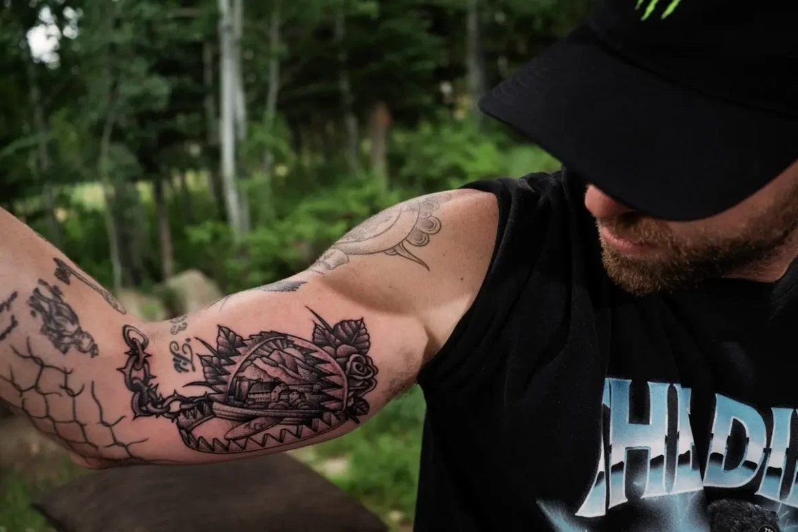 Kotsenburg came to Wessman’s tattooing chair with an idea: Park City’s well-known McPolin Barn. Wessman added a bear trap and the 435 area code, then tattooed it on Kotsenburg’s bicep. “(It) turned out so cool,” Kotsenburg says. “It’s really one of my favorite ones.”