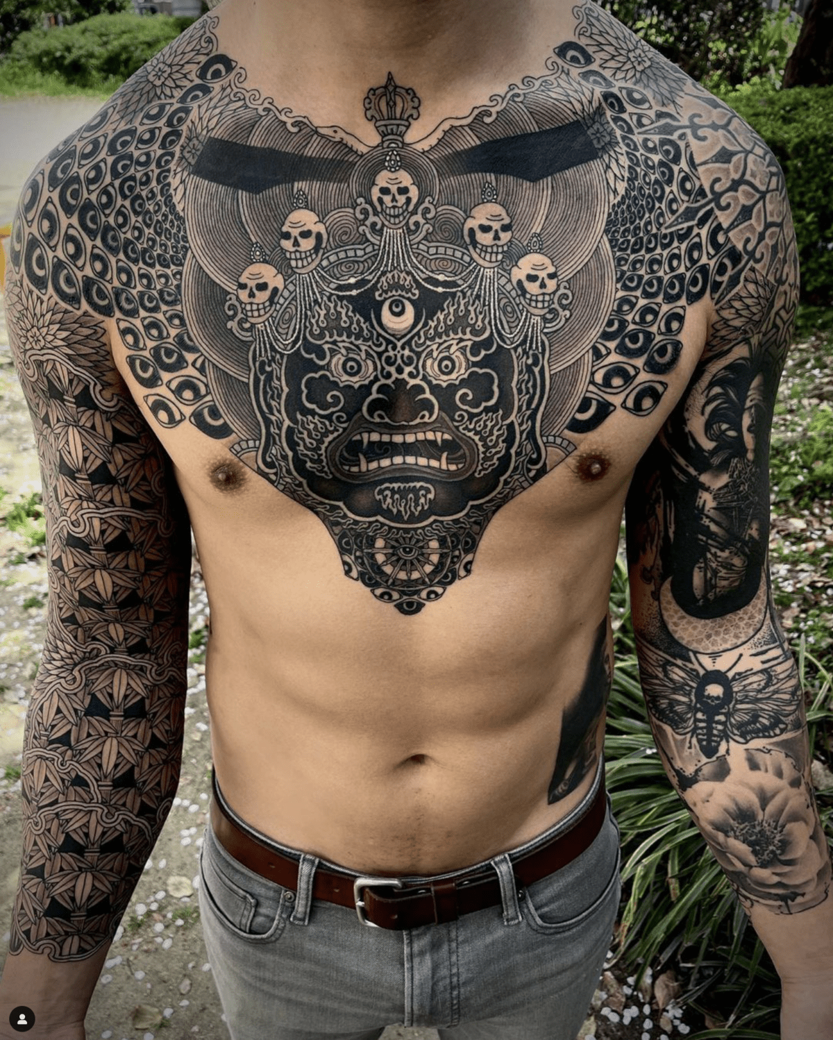While staying in the realm of blackwork, Nissaco takes a turn in a different direction. His work primarily focuses on large cohesive pieces that break the bounds of traditional symmetry. You can find his pieces mimicking an almost geometrical canvas at times.