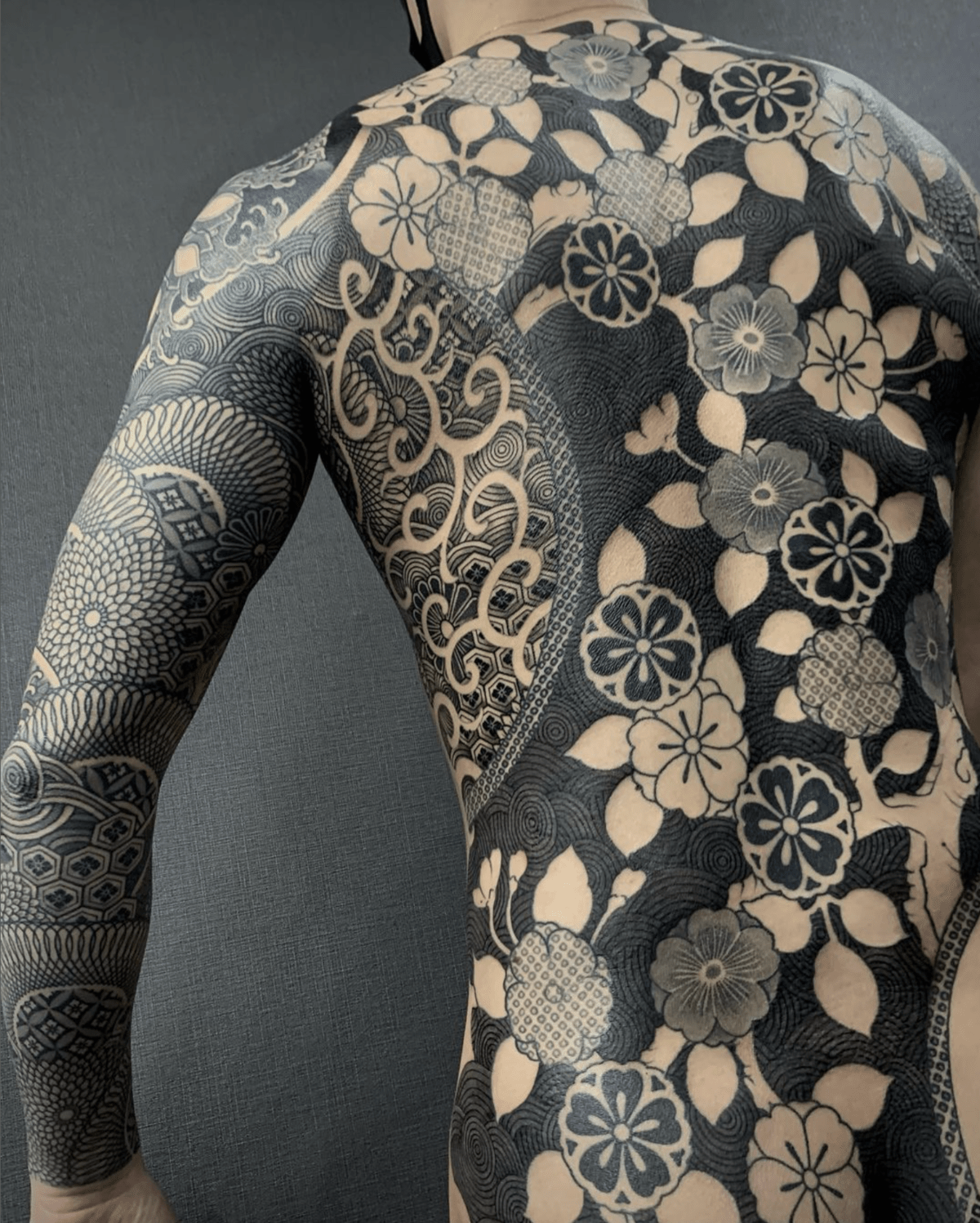 Yuki sits among top talents, along with fellow tattoo artists Taku Oshima and Nissaco. Unlike Yuki’s more traditional style of tattooing, Oshima’s expertise plays heavily on ornamental blackwork, and he often creates full-body suits. Oshima traveled a lot when he was younger and says he started tattooing because he found it to be a profession where you can be successful and still travel the world. He says, “My goal is simple: to create beauty that can be seen from 10 meters away.”