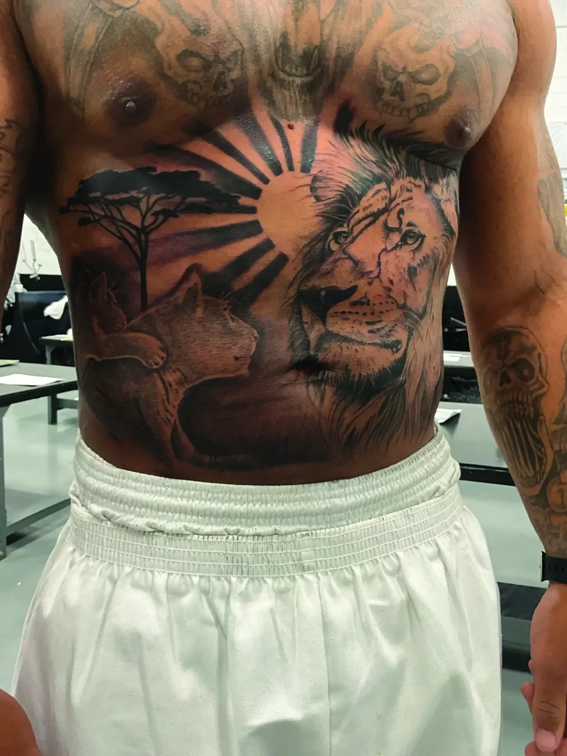 Because it is a working prison, students of the JVTCC tattooing program charge inmate clientele for their services, who use their commissary money to get inked. “The goal with it is for each of them to have at least $30,000 in their savings account, so that way when they get out, they can have a car, a house, maybe get it furnished, and some clothing, and be able to start their career in the world of tattooing,” Normile explained, adding, “I give a hundred percent job placement guarantee.”