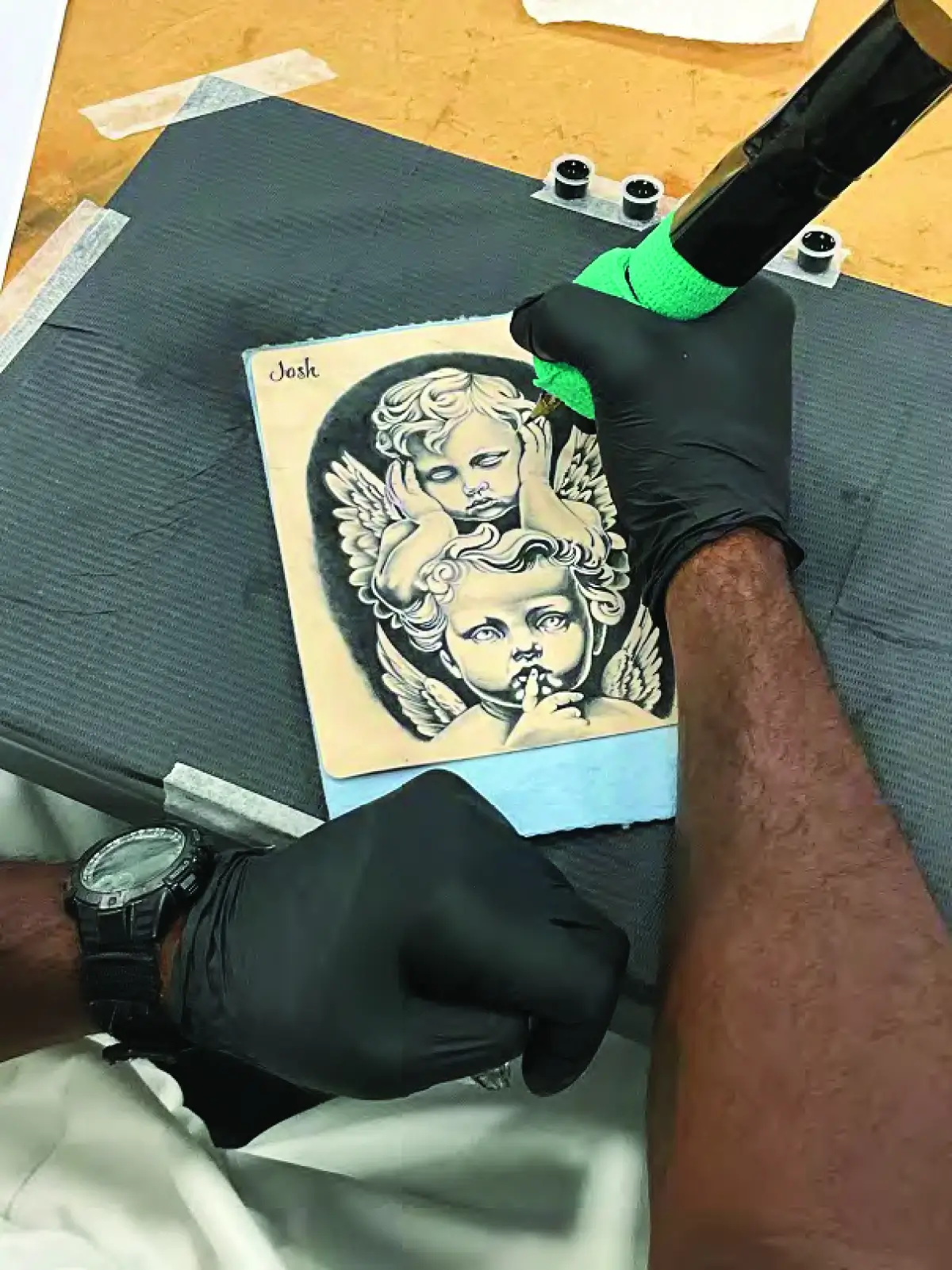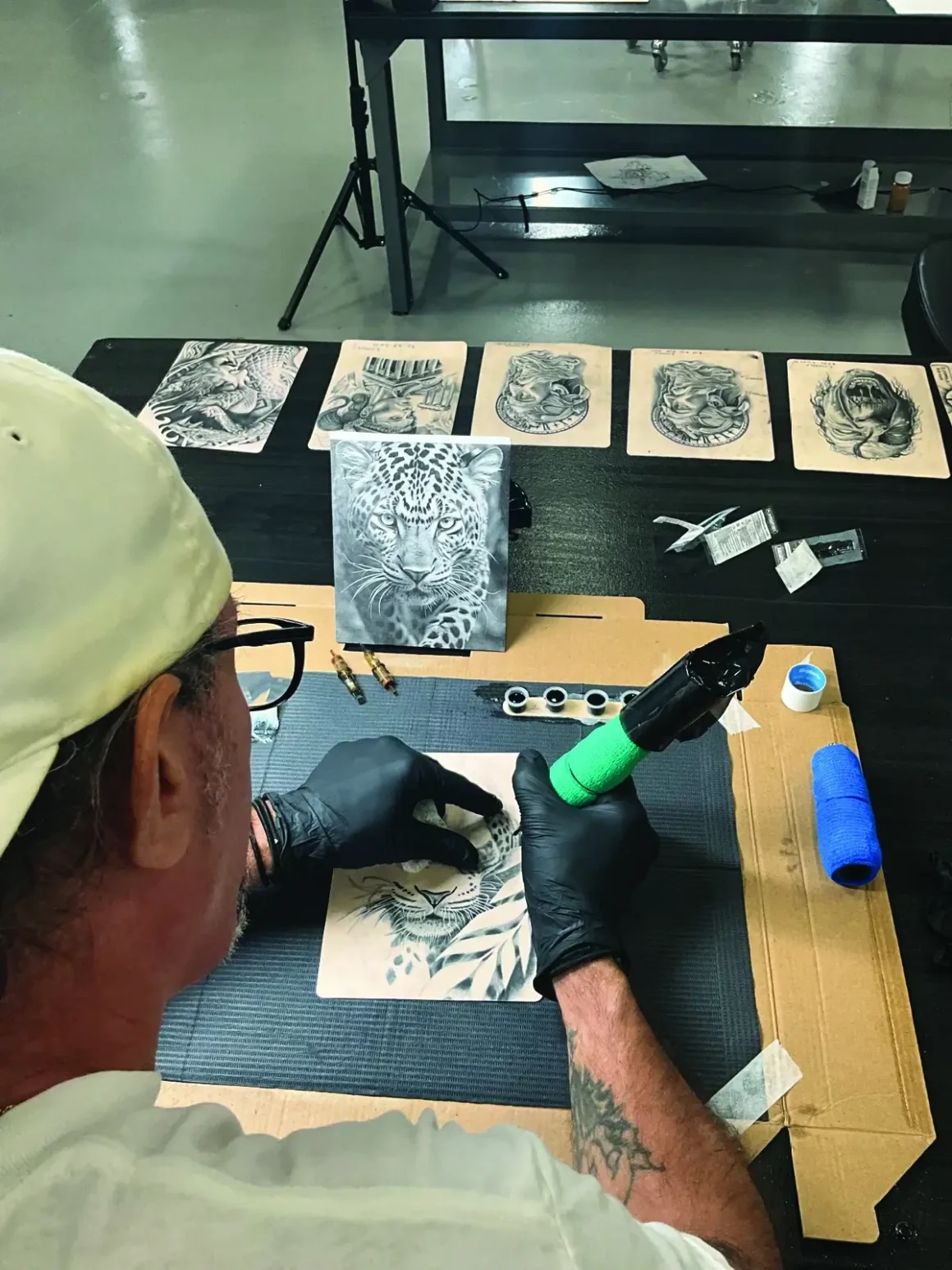 The inmates practice art on fake skin during the second phase of the program and are tested weekly. The students start tattooing simple shapes, such as stars and circles, and go on to create their own tattoo designs to ink into the fake skin. “I humble them because a lot of them have tattooed in here for years, and they think they’re monsters, until you put them on real skin or fake skin and tell them ‘star’ or ‘circle’ and you humble them,” Normile said, laughing.