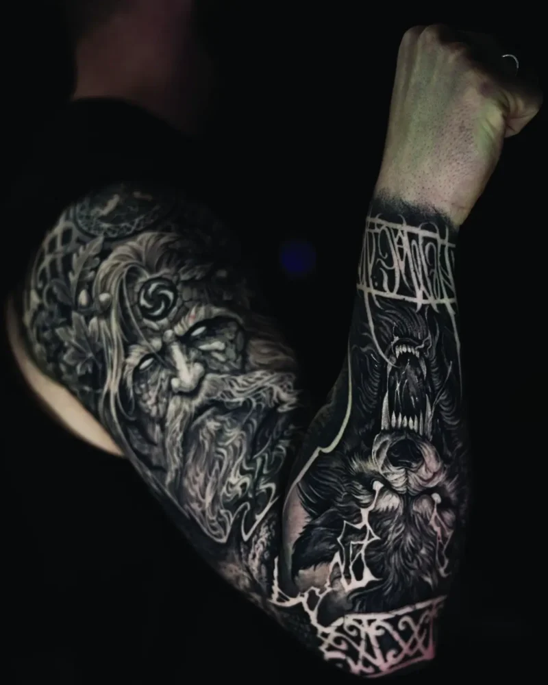Tkach grew his childhood curiosity into a career inking large-scale, immensely detailed and complex, mostly black-and-grey tattoos. He pursued large-scale work to distinguish himself after his early designs “spread across the internet and were copied by hundreds of other artists.” Now, he receives requests almost exclusively for full sleeves or legs from numerous clients, both within Ukraine and beyond.