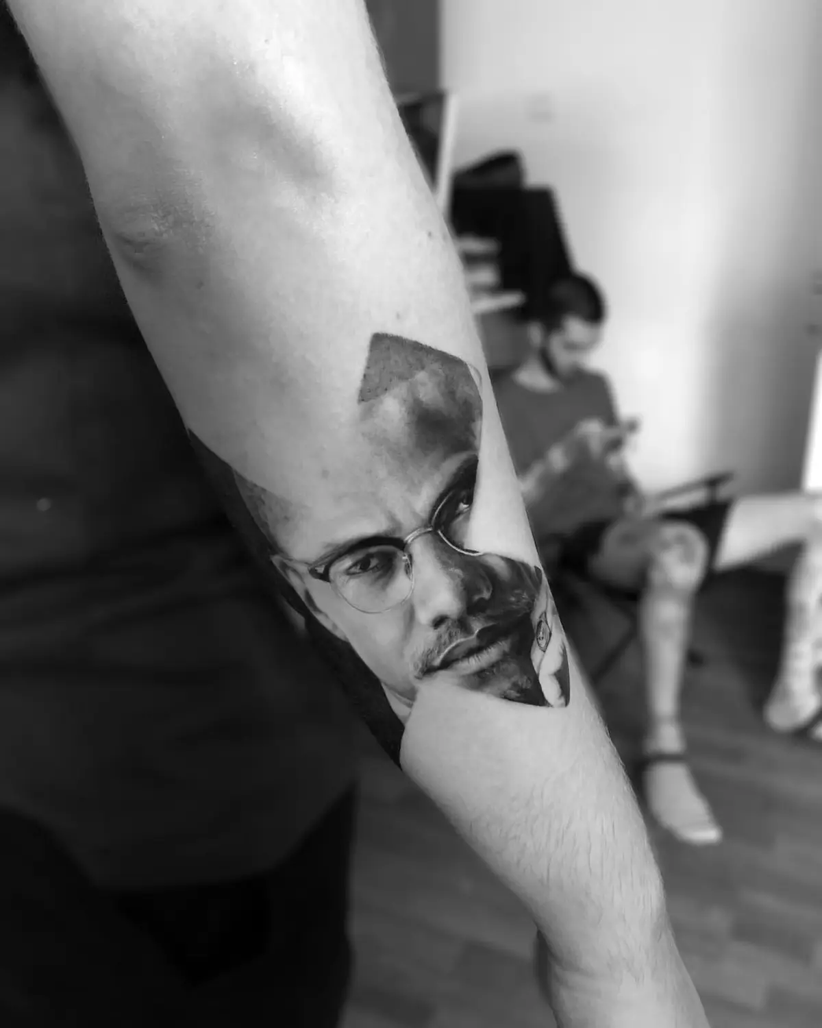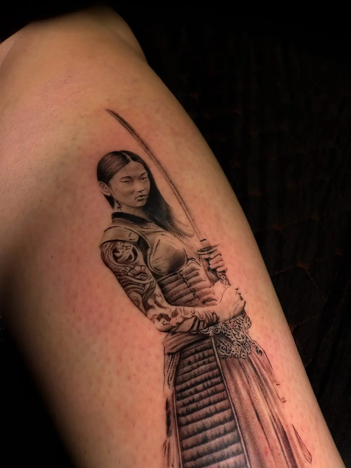 His work today reflects that same restraint. Black and grey minimal realism stripped of anything extra. Early in his career he leaned into heavier contrast and louder design choices, but time changed his instincts. He learned that removing what doesn’t serve the piece makes the emotion easier to feel. In his hands, minimalism is not about doing less. It is about revealing more.