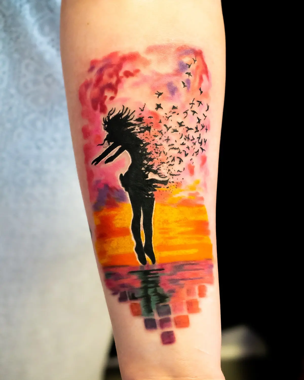 That same level of commitment shows up in their embroidery-style tattoos, where designs are built to look stitched into the skin, relying on precision, depth, and controlled color rather than heavy outlines. Like the Mystery tattoos, the final result often isn’t fully revealed until the end.