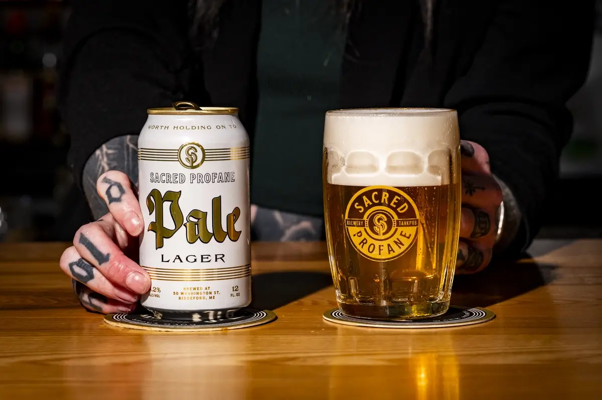Sacred Profane is a uniquely focused brewery and tankpub in Biddeford, Maine, devoted to crafting lagers that honor heritage while embracing innovation. Launched in 2022, the name reflects a philosophy of reverence mixed with irreverence—rooted in traditional brewing rituals yet bold enough to question conventions. Sacred Profane brews just two beers, a Pale Lager and a Dark Lager, each brewed with meticulous attention to process, including open fermentation, triple decoction mashing, and conditioning in horizontal tanks. Beer is dispensed straight from copper tanks suspended above the bar—an homage to the Czech “tankovna” pubs that inspired the concept.