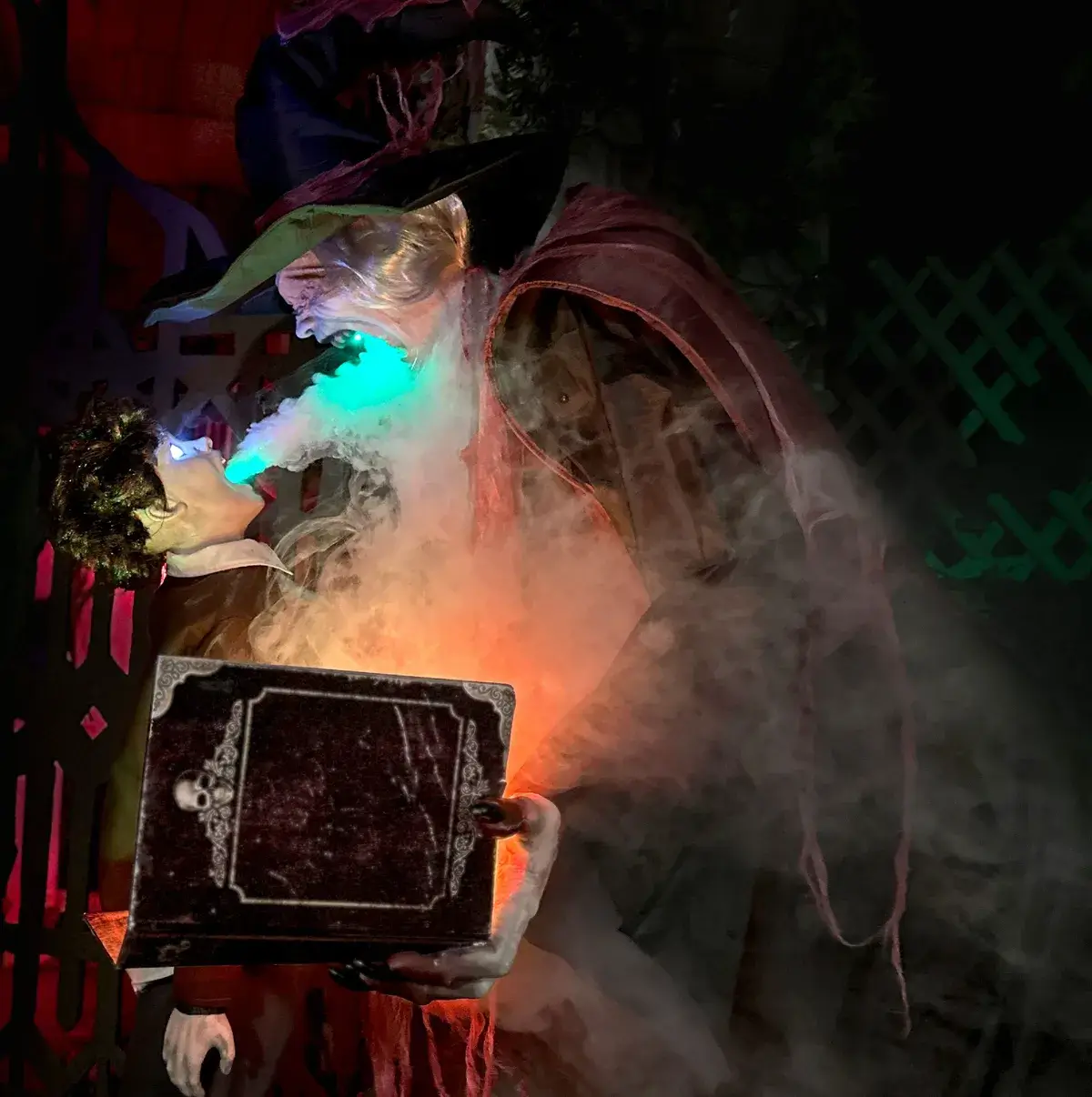 Front and center in Haunted Hill Farm’s 2025 Top Picks is The Soul Reaping Collection by Tekky Toys, featuring this year’s all-new Soul Harvesting Witch (pictured) alongside the legendary Soul Sucking Reaper. These animatronics immerse guests with glowing lights, chilling voices, and a fog-and-light soul effect that creates the illusion of spirits being ripped away. Beyond this duo, the lineup is packed with variety. Clowns on the go, zombies that wail, a jumpscare coatrack, towering skeletons, eerie gravestones, and ghostly figures that glow. Each piece is motion- or sound-activated, built with gruesome realism, and designed to deliver a spine-chilling haunted experience in your home or covered outdoor space.