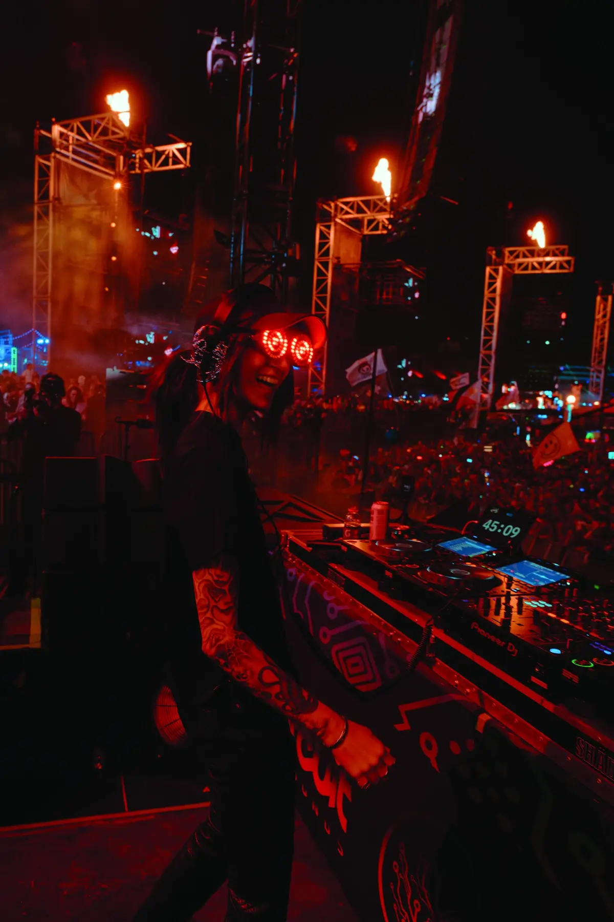 REZZ distinguishes herself by thoughtfully curating every aspect of her performances, from her spiral-patterned goggles to the unique visuals she incorporates. The atmosphere she creates merges elements of hypnosis, horror, and optical illusions. Fans are immersed in a vortex of strobing geometry and pulsating bass, surrounded by visual tunnels that seem to stretch reality. The air hums with tension as the drop builds, only to erupt in waves of synchronized movement and ecstatic release.